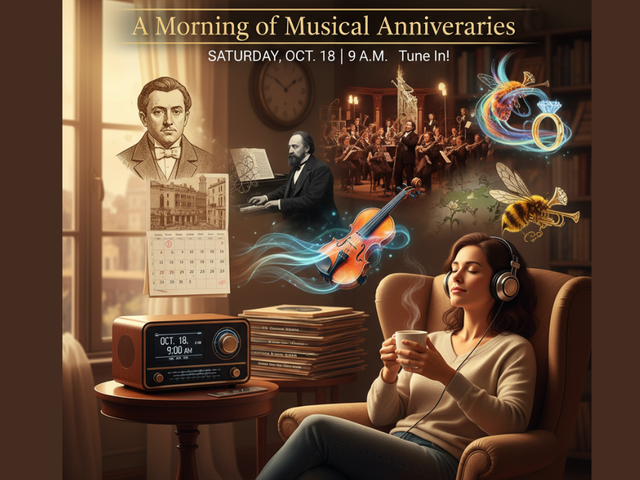 A Morning of Musical Anniversaries — Saturday, Oct. 18 at 9 a.m. Set your alarm clocks and pour that first cup of coffee, because this Saturday’s 9 a.m. hour is taking a time-traveling twist! We’re spinning a classical music almanac — a playlist stitched together from big (and sometimes bizarre) moments that happened on this very day in music history. Births, premieres, even a few farewells — it’s like flipping through a sonic scrapbook, where every piece has a story and every minute hits a milestone. Here’s your sneak peek at what’s coming up in this whirlwind of history, harmony, and a few surprising coincidences. 🎂 9:00 a.m. — Baldassare Galuppi: Concerto Primo in G Major Performed by: Ensemble Stil Moderno Reason: 1706 – Birth of the Italian opera composer Baldassare Galuppi, born in Burano near Venice. If your morning coffee hasn’t kicked in yet, this bright and buoyant concerto will do the trick. Galuppi — sometimes called “Il Buranello” after his tiny island hometown — was one of Venice’s busiest composers, known for his sparkling operas and sunny instrumental writing. His Concerto Primo in G Major bubbles with elegance and good humour, setting the perfect tone for our musical birthday bash. 🎻 9:05 a.m. — Brahms: Final movement from String Quartet No. 2 in A minor, Op. 51 No. 2 Performed by: New Orford Quartet Reason: 1873 – First performance in Berlin by the Joachim Quartet. From Venice we jump to 19th-century Berlin, where Brahms finally worked up the courage to unveil his second string quartet. (He’d been nervous about writing quartets for years — imagine following in Beethoven’s footsteps!) The finale we’ll hear is pure Brahms: earthy, energetic, and full of the rhythmic bounce that makes his chamber music so addictive. 🎭 9:12 a.m. — Gounod: “Quel trouble inconnu me pénètre” from Faust Performed by: Jonas Kaufmann with the Prague Philharmonic Orchestra, conducted by Marco Armiliato Reason: 1893 – Death of French composer Charles Gounod in Paris. Time for a bit of operatic drama — it wouldn’t be a musical almanac without some passionate sighing, right? Gounod’s Faust remains one of the most beloved operas of the 19th century, and this aria shows off all the lush, lyrical warmth that made him a hit in Paris. Sung by tenor superstar Jonas Kaufmann, it’s a heartfelt farewell to the composer who gave us some of opera’s most romantic melodies. 🎺 9:20 a.m. — Mahler: Third movement (Scherzo: Kräftig, nicht zu schnell) from Symphony No. 5 Performed by: Chicago Symphony Orchestra, conducted by Georg Solti Reason: 1904 – First performance in Cologne, conducted by Mahler himself. Hang onto your headphones — things get bigger, bolder, and brassier here. Mahler’s Fifth is a symphonic beast, full of extremes: anguish, joy, and everything in between. The Scherzo is one giant musical waltz gone wild, swirling with rhythm and radiant orchestration. Mahler himself conducted its premiere on this day in 1904 — a nice excuse to let those horns roar before breakfast. 🎻 9:37 a.m. — Prokofiev: First movement from Violin Concerto No. 1 in D Major, Op. 19 Performed by: Itzhak Perlman with the BBC Symphony Orchestra, conducted by Gennady Rozhdestvensky Reason: 1923 – World premiere in Paris with Marcel Darrieux as soloist and Serge Koussevitzky conducting. From late-Romantic fireworks to early-20th-century cool — Prokofiev’s First Violin Concerto was years ahead of its time. Written during the chaos of World War I, it’s full of crystalline melodies and shimmering colours. The premiere in Paris helped establish Prokofiev as one of the century’s boldest voices. With Perlman at the helm, this opening movement absolutely sings. 💔 9:46 a.m. — Viktor Ullmann: Two songs from Five Love Songs Performed by: Teng Li, viola, and Meng-Chieh Liu, piano Reason: 1944 – Death of Austrian composer Viktor Ullmann in Auschwitz. Here, the tone shifts. Ullmann was a gifted Austrian composer whose career was cut short in the Holocaust. Even while imprisoned in Theresienstadt, he continued to write — music that glows with courage and humanity. These two “Love Songs” are delicate and poignant, a moving tribute to the endurance of beauty in the face of horror. 🧙♂️ 9:51 a.m. — Howard Shore: The Prophecy & Concerning Hobbits from The Lord of the Rings Trilogy Performed by: London Philharmonic Orchestra, conducted by Howard Shore Reason: 1946 – Birth of Canadian composer Howard Shore. Time to lighten things up with a trip to Middle-earth! Born on this day in 1946, Toronto-born composer Howard Shore gave us one of the most iconic film scores of all time. These two themes from The Lord of the Rings trilogy are pure magic — sweeping melodies, Celtic inflections, and enough brass fanfare to make even Gandalf smile. 🐝 9:58 a.m. — Rimsky-Korsakov: Flight of the Bumblebee Performed by: Wynton Marsalis and the Eastman Wind Ensemble Reason: 1961 – Birth of trumpet legend Wynton Marsalis in New Orleans. We end the hour with a buzz — literally. Rimsky-Korsakov’s famous Flight of the Bumblebee gets a jazzy makeover in this virtuosic performance by birthday boy Wynton Marsalis. It’s flashy, fast, and the perfect musical caffeine shot to finish our almanac hour in style. From Galuppi’s graceful Baroque beginnings to Marsalis’s trumpet fireworks, this hour flies through more than 250 years of music history — all tied together by the date October 18. It’s part history lesson, part party playlist. You’ll hear triumphs, tragedies, and a few musical milestones that might just surprise you. So grab your mug, tune your dial, and join us for this musical time-machine ride through October 18 — proof that every day in history has its own soundtrack.